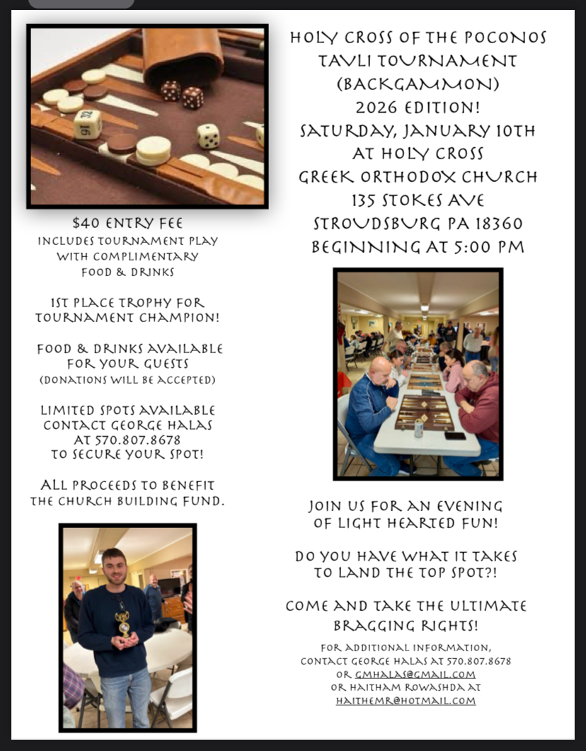 - Eight Week Online Catechism at 7 pm (ask Fr. Konstantinos for the link)